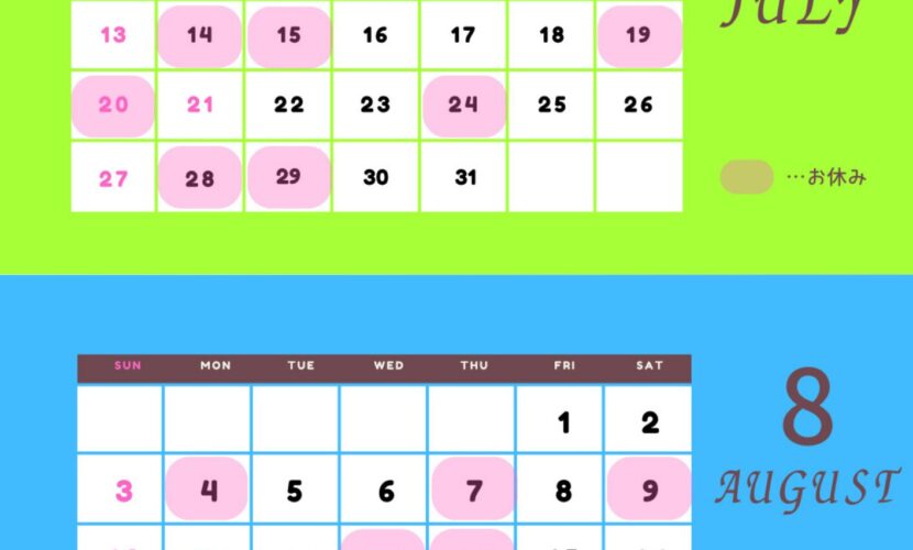7月の営業日と合わせて、この夏のご予定にお役立てくださいませ!!